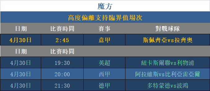 利用「魔方關系」進行支持趨勢預測分析(所有數據均結合中國競彩(主)、亞歐數據作為分析體系),超越臨界數值之上可視為低機率方向,此方式對比賽方向分析有顯著幫助效果。