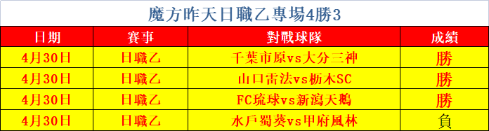 魔方昨天日職乙專場4勝3,日系賽事近期成績不俗,狀態攀升。魔方將繼續努力,追求精益求精。