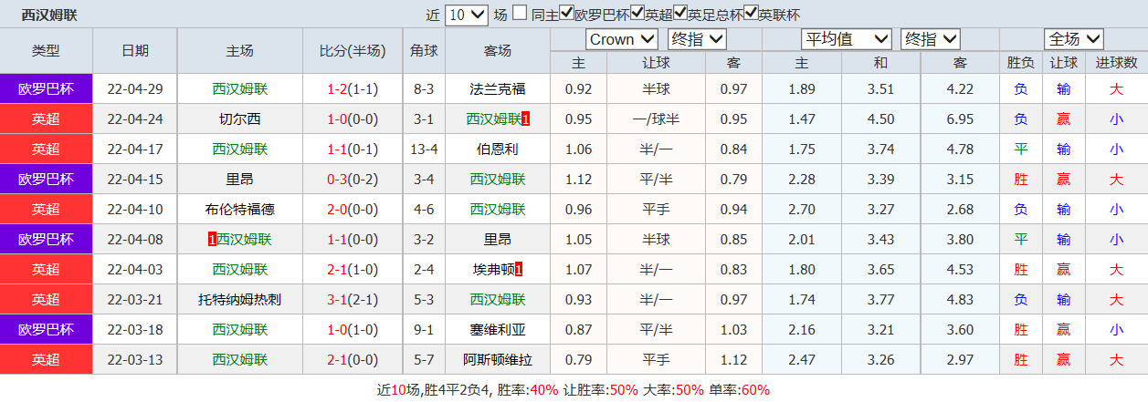 西汉姆联作为英超强队,球队整体的实力尚可,本赛季联赛赛事取得15胜7平12负的成绩,目前成绩排名第七。球队近期的状态不太稳定,上场联赛客场对战切尔西,球队场面上处于下风,在比赛上半场成功守住了球门,可惜到最后时刻还是丢掉了一球,最终遗憾以0-1的比分战败。