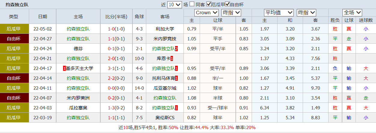北京时间5月5日10:00,托利马体育对阵约森独立队。托利马体育上场自由杯对战米内罗美洲,球队以3-2的比分战胜对手,而约森独立队上场自由杯以1-1的比分战平对手米内罗竞技,此次对战,谁会拿下比赛?