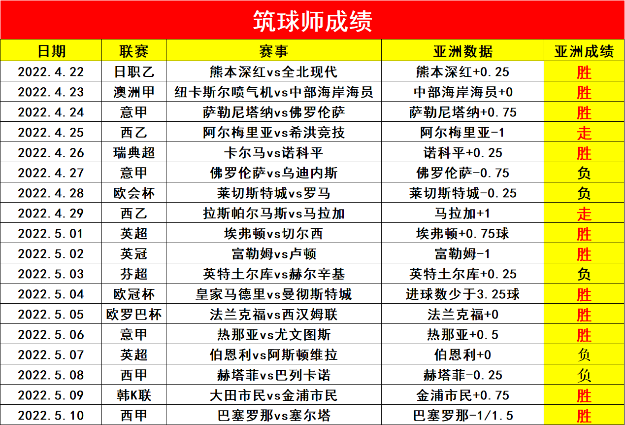 大家好!我是筑球师。很高兴能在捷报这里与大家交流足球的心得。本人多年钻研足球冷热数据,擅长于分析亚洲数据波动的隐藏面,再结合球队之间状态与整体实力的差异化,相对精准地捕捉赛事的利好数据轨迹。接下来的日子筑球师与大家一起享受足球带给我们的快乐!
