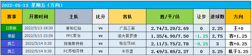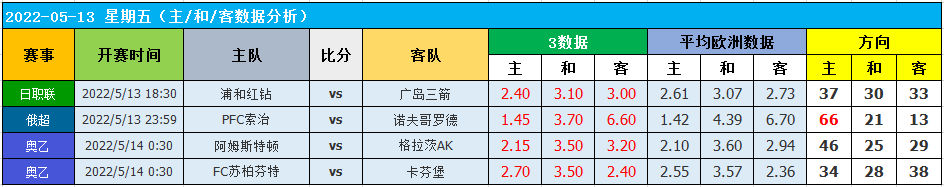 今天的比赛较多,笔者挑选了部分晚场比赛出来作为本期的参考,希望能够打出对应的高概率方向!