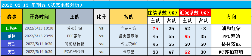 通过对两队的历史成绩、交手成绩及升降级等得出往绩系数;而近况系数则是通过近期(10场左右)成绩分析通过公式计算得出近况系数。