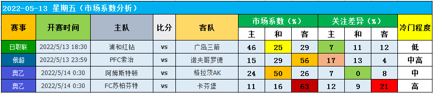 注:市场数据与关注差异均有出现深色标记的选项为最大概率出现冷门!