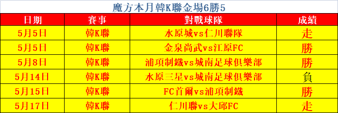 魔方昨天勝負交替,韓K聯本月金場6勝5。魔方將繼續努力,追求精益求精。