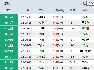 1、洛桑实力不强,本赛季他们的状态也极不稳定,34轮联赛战罢,球队仅仅以4胜10平20负积22分的成绩排名积分榜末位,已经提前宣告降级,其场均失球数超过2粒,后防颇为空虚。