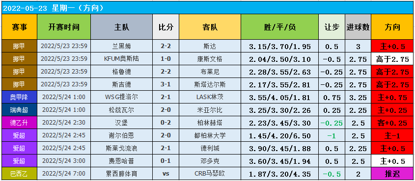 今天的比赛较多,笔者挑选了部分夜场比赛出来作为本期的参考,希望能够打出对应的高概率方向!