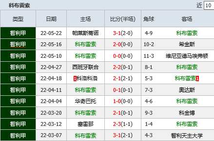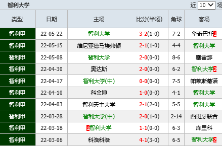 2、两队此前在过往有过多次交手记录,就近10次交锋而言,智利大学4胜2平4负,近4次作客科布雷索,则是1平3负。