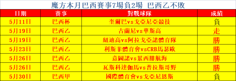 魔方昨天1勝1負。本月巴西賽事不俗,7場負2場,巴西乙保持不敗。魔方將繼續努力,追求精益求精。
