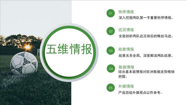 《孙子兵法》云:“知己知彼,百战不殆。”灵通哥的情报内容严谨、扎实、全面,能够更好帮助广大朋友全方位掌握赛事情况,从而做出有利决策。为了给大家提供更加高质量的比赛情报,情报体系再升级,灵通哥将从五个维度的情报对比赛进行全面的剖析后给出赛事观点,欢迎大家持续关注。