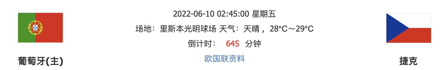 北京时间2022年06月10日02点45分,战意十足的葡萄牙今场能否如愿捍卫主场?罗纳尔多能否继续带领队员取得胜利?捷克能否反客为主?