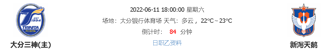 北京时间6月11日18:00,日职乙联赛2022赛季第21轮比赛,大分三神vs新泻天鹅,日职联降班马大分三神近期喜获三连胜状态是否得到真正回归?在日职乙沉寂多年骚动难耐的新泻天鹅能否守住球队目前的联赛榜首位置?让我们一起关注!