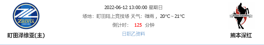 北京时间2022年6月12日13:00,日职乙联赛2022赛季第21轮比赛,町田泽维亚坐镇主场迎战目前日职乙联赛作客能力第一的熊本深红,客队作为升班马表现走势十分凌厉,异地作战更是强势至极,町田泽维亚可有能力守护主场尊严拿下三分?待大虎为大家详细分析。