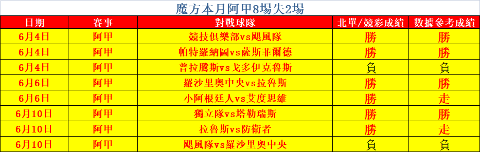 魔方昨天勝負交替,整體淨+1。本月阿甲專場8場失2場。魔方將繼續努力,追求精益求精。