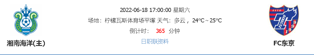 北京时间2022年6月18日17:00,日职联赛2022赛季第17轮比赛,日职联本赛季赛程近半,本场主队湘南海洋仍未能真正摆脱球队的降级阴霾,本场迎战实力FC东京,球队能否再现精彩表现造冷反击?日职联除了降级阵营以外,争冠队伍积分也是相当接近并进入胶着,FC东京对身前位置可有想法?让我们静观其变!