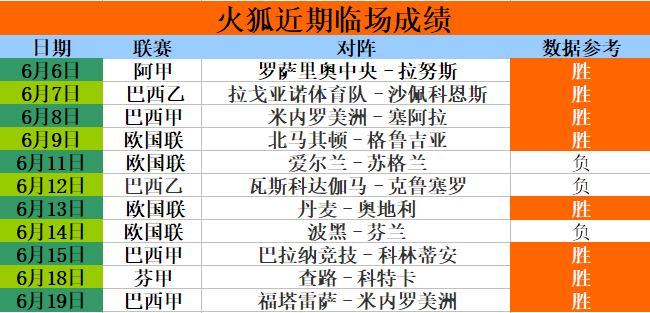 奥里吉!昨天火狐临场送出的巴西甲赛事,福塔雷萨主场1-0小胜米内罗美洲,亚洲数据建议顺利打出,临场喜获三连胜,近11期临场取胜8场,今天赛事依旧不少,火狐已经初步选定了几场重点赛事,争取在新的一周拿下开门红!