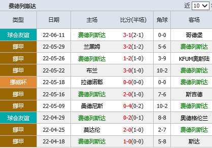 2、此前在和费德列斯达的7次交手当中,诺霍斯2胜3平2负,两队平分秋色。