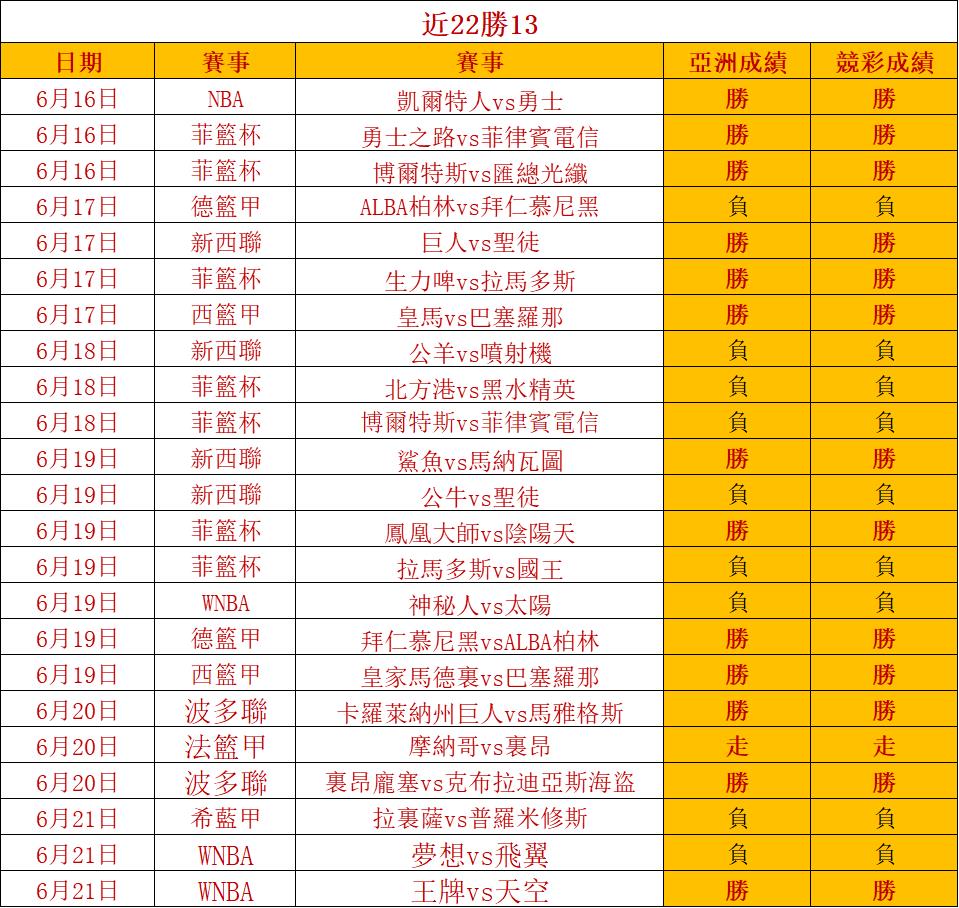昨日分享的3场赛事1胜2负,未能取得正向场次较为遗憾,近期共為大家分享了23場賽事取得了13勝1走的成績。另外菲篮杯赛事取得8胜5的成绩。