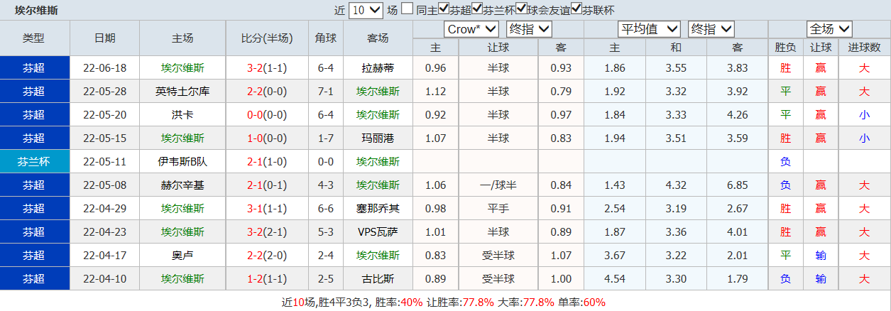而HIFK足球整体的排名比较的低,本赛季主客表现都非常的差,本赛季赛事取得3平7负的成绩。HIFK足球上场面对VPS瓦萨,场上完全处于低迷的状态,上半场就丢了2球,而下半场即使打入1球,也再丢3球,以1-5惨败对手,确实防守能力极差。