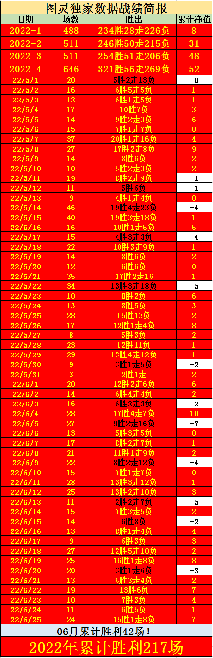 近期英冠的表现出色,近99胜60,打出率高达61%!哥伦甲新赛季的表现是非常不错,近171胜120,打出率高达70%!法乙近94胜65,打出率高达69%!日职联新赛季近108胜68,打出率高达63%!亚洲预选近18胜12,打出率高达67%!英甲近87胜57,打出率高达66%!俄超近25胜17,打出率高达68%!南球杯近44胜30,打出率高达68%!巴西乙近97胜64,打出率高达66%!爱超近35胜23,打出率高达66%!非洲杯近25胜16,打出率高达64%!中超近38胜23,打出率达61%!(以上数据均自2022年1月1日至今)