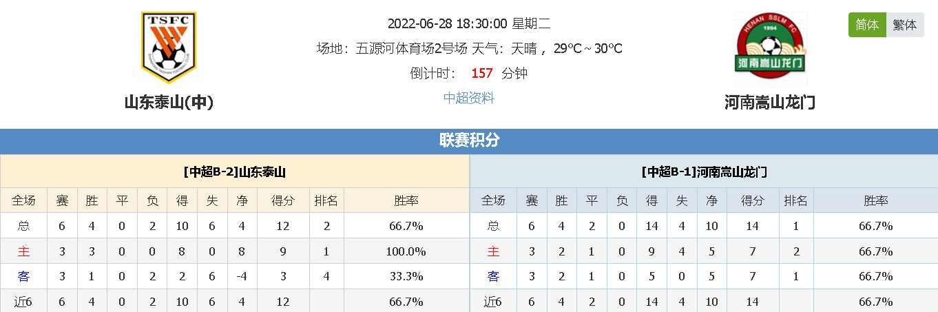 北京时间6月28日18:30,中超2022赛季B组第7轮比赛,卫冕冠军山东泰山保持了一轮连胜冲刺之后仍然屈居于河南嵩山龙门之后,本场比赛能否在双方的对战中找到突破口实现反超?让我们一起关注!