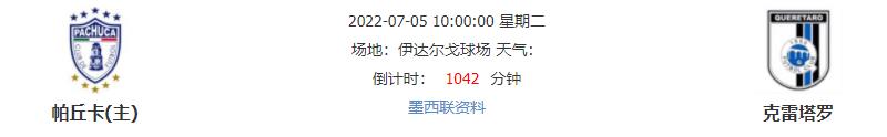 北京时间7月5日10:00,墨西联新赛季第一轮比赛,帕丘卡主场对战克雷塔罗,历史交锋,两队胜负差距不大,其中最近一次交手两队以战平收场,此战究竟谁能取得开门红?