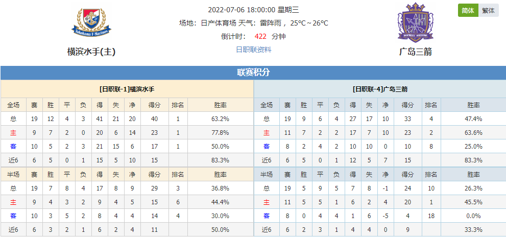 昨天为大家分享的韩K联比赛,蔚山现代vs江原FC,最终以蔚山现代2-1战胜江原FC,北单顺利拿下,但是数据方面喝了杯水;整体成绩依然保持着近16场比赛取得10胜。今天笔者继续为大家分享一场日职联的赛事:横滨水手vs广岛三箭,希望能通过筑球师的努力在接下来的日子里能与大家分享更多更好的赛事,有望各位多多支持!