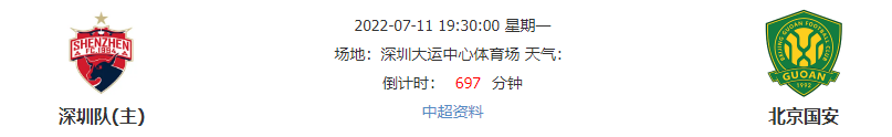 北京时间7月11日的晚上19点30分,中超联赛的第10轮(第一阶段的收官战)的A组即将继续火热进行——实力不俗的深圳队将会迎来传统豪门北京国安的挑战!在上轮重返胜轨的深圳队能否在新星戴伟浚的率队下取得连胜收官?还是头号射手张玉宁缺席的北京国安能够无惧困难,进一步延续自己近期的不败战绩?