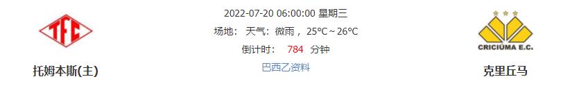 北京时间2022年7月20日06:00,巴西乙迎来第19轮赛事,托姆本斯主场对战克里丘马,两队都是巴西乙的升班马,新赛季的表现相差无几,实力可谓不相伯仲,此番交手,双方会擦出怎样的火花?
