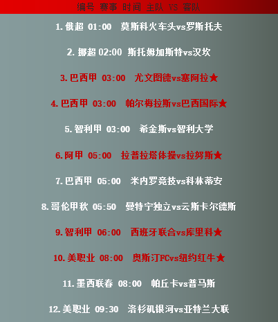 赛事前瞻:(标★赛事表示信心更佳)
