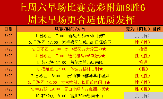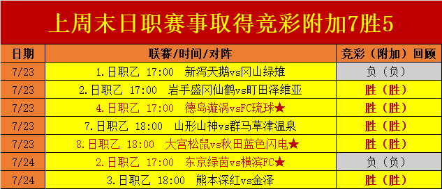 8.近期的日职赛事发生在上周末,上周末日职赛事取得竞彩附加7胜成绩,日职赛事是CDA数据的拿手比赛。