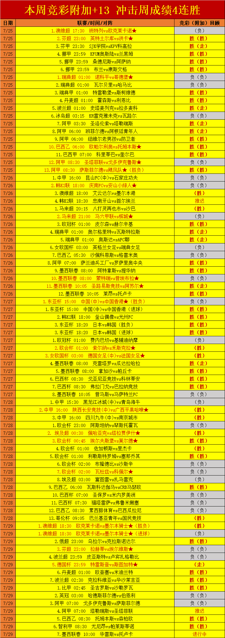 3.过去结束的三周周成绩均取得胜利,近三个周成绩累计竞彩附加+23成长,周成绩取胜信心充足;