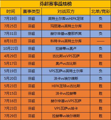 芬超赛事战绩榜