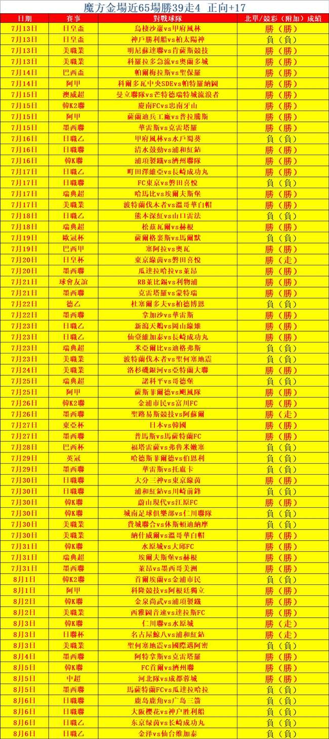 魔方昨日日場失利,今日細心總結支持臨界值數據變化走向,務求保持連續7次周末周日正向的大好勢頭。近65場金場勝39場,正向+17!昨天美賽專場進行中,歡迎大家關註。對於周六日的支持臨界值的把控更為精準,目前連續7個周末周日產生正值,正向高達+31。魔方將繼續努力,追求精益求精。