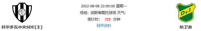 北京时间08月08日22点00分,2022阿甲联赛第二阶段第12轮的一场比赛,防卫者将前往因斯蒂图托球场与科尔多瓦中央SDE展开较量。科尔多瓦中央SDE近期主场负多胜少,本轮面对状态正佳的防卫者,其主场发挥不宜高估。