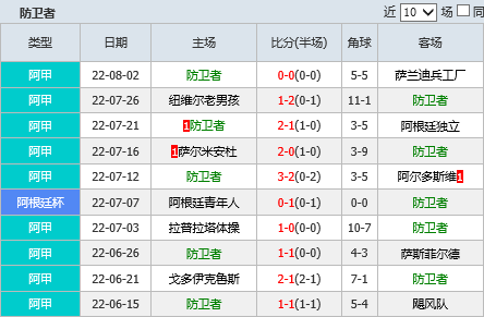 1、防卫者在阿甲联赛第二阶段表现一般,他们主要是依靠主场抢分,而其客场表现则极不稳定,5轮客场比赛下来,他们只是取胜1场,其中后防失球数多达7粒,防线有待加强。