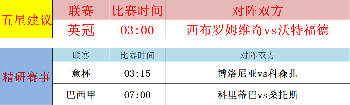 推演建议优化说明:比赛场次分为五星和精选两个建议,其中五星可作为重点参考建议(内容具有详细的综合分析),另外附加2-4场精选赛事的简述和赛果参考,敬请期待。很高兴能进入与大家一起交流,作为一名老牌的赛场推演技术分析师,往后能分享给大家不一样是赛场分析数据,为大家从不一样的维度去提前体验赛场,有一种令人莫名其妙的兴奋。今天我们将借助推演模拟的技术,就像进入时光隧道,提前感受赛场的每个瞬间。