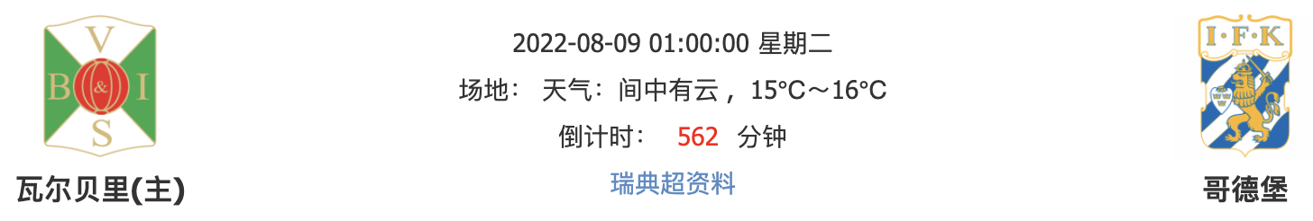 北京时间8月09日01点00分,瑞典超级联赛的一场焦点之战,瓦尔贝里将在主场迎战哥德堡。哥德堡状态大好,能否延续强势?