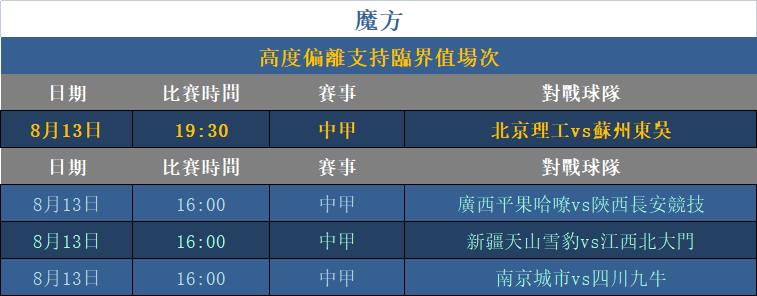 利用「魔方關系」進行支持趨勢預測分析(所有數據均結合中國競彩(主)、亞歐數據作為分析體系),超越臨界數值之上可視為低機率方向,此方式對比賽方向分析有顯著幫助效果。