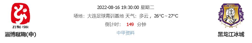 北京时间8月16日19时30分,中甲联赛2022赛季第二阶段B组第8轮比赛,淄博蹴鞠vs黑龙江冰城,双方的上一轮对决上演了一场闹剧,以淄博蹴鞠一方放弃比赛,黑龙江冰城躺胜拿到了三分,本次真正对决双方能否分出胜负?我们拭目以待!