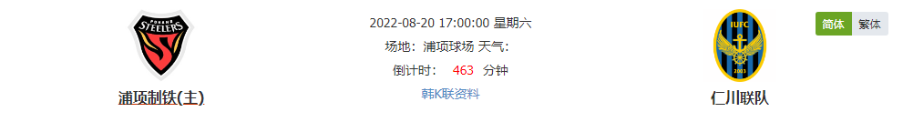 看点:浦项制铁上一场比赛客场0-5不敌济州联队,此役主场作战状态能否有所好转?仁川联队近期取得2连胜上一场比赛战胜全北现代,此役作客面对浦项制铁能否延续出色表现?