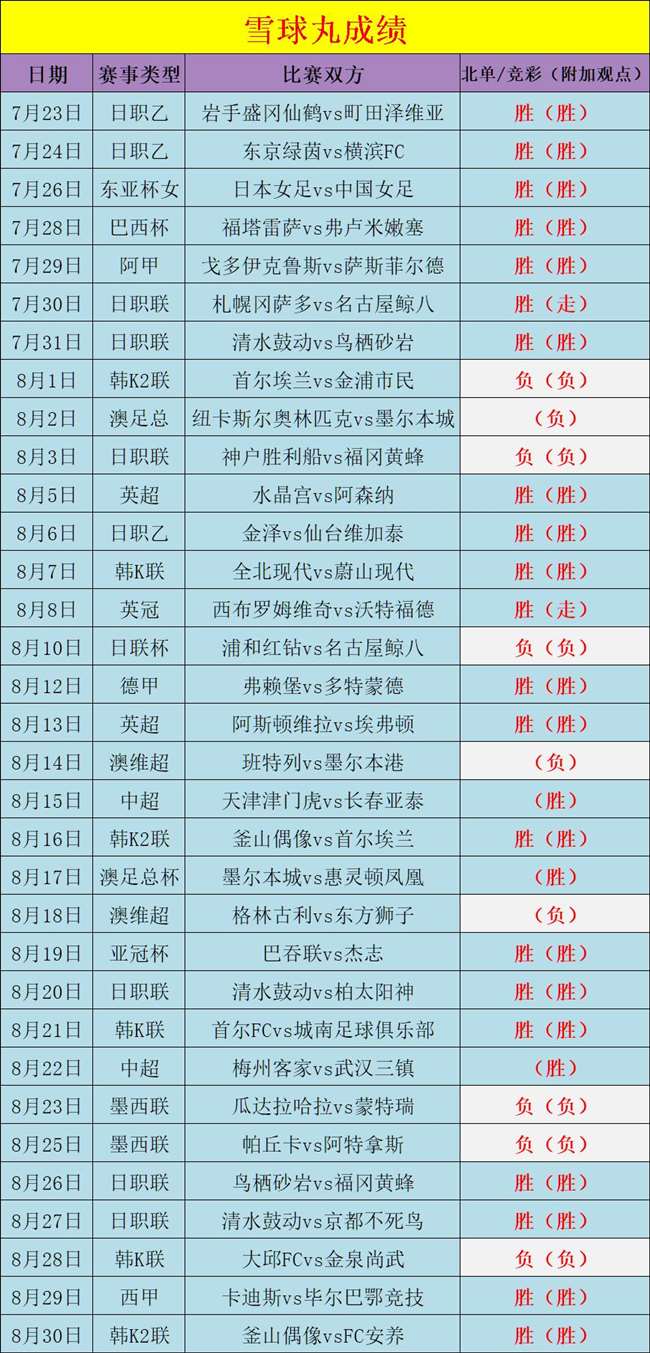 【昨日回顾】昨日一战笔者与大家分享了一场来自韩K2联的赛事釜山偶像vsFC安养,根据对釜山偶像近赛季表现的观察,笔者发现到主队目前场面临着几乎无锋可用的局面,而比赛开始后虽然主队确是掌握着大部分的控球节奏和进攻数据,但基本都是一些前场小打小闹的攻势,难以对FC安养造成有效打击,比赛坚持到补时阶段由FC安养打进终结1球,以0:1的赛果结束,有赖于赛前对主队前场低迷表现的找准给与了客队FC安养正确的支持,此战再获一次胜利成绩!统计近期成绩目前在进度内取得了32场23胜的阶段表现,当中笔者创造了7连胜+2次4连胜+2次3连胜+3次2连胜的分段连胜纪录!为迅速找到精准出击的赛程和回归连胜状态,今天将果断选择出击一场日职联的赛事,福冈黄蜂vs大阪钢巴,务求再创佳绩获得认可!