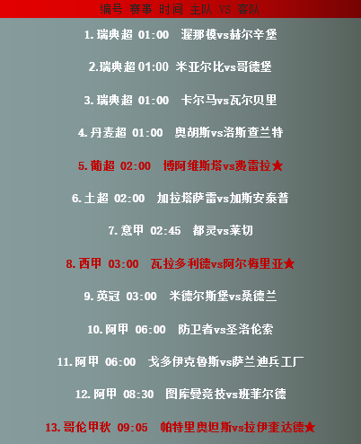 赛事前瞻:(标★赛事表示信心更佳)