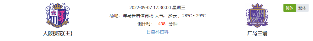 看点:大阪樱花近期联赛遭遇2连败,此役日皇杯赛事状态能否有所好转?广岛三箭联赛豪取5连胜,此役作客面对大阪樱花能否延续胜轨?