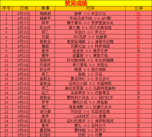 昨天赞赏欧冠杯成功拿下,热刺2-0马赛,总进球数非常给力。赞赏总成绩27场只失利4场,状态火热,今晚再接再厉,继续冲刺好成绩,欢迎关注。
