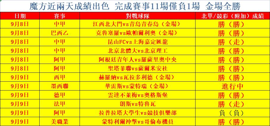 魔方昨日再次打出好成績,五大聯賽專場3場不敗正向+2!近兩天狀態持續攀升,完成賽事11場,僅僅負1場,金場盡數拿下!魔方將繼續努力,追求精益求精。