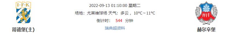 北京时间2022年09月13日01:10,瑞典超第22轮的较量,由哥德堡坐镇主场迎战赫尔辛堡,本赛季首循环,哥德堡客场以1-0小胜赫尔辛堡,本轮回到主场,哥德堡能否借主场之利延续胜绩?