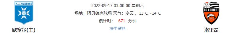 北京时间9月17日03:00,法甲的一场焦点比赛,欧赛尔vs洛里昂,欧赛尔近期联赛3连败,状态低迷,本轮主场能否结束颓势?洛里昂近期联赛3连胜,状态火热,本轮客场能否延续胜绩?