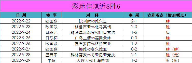 2. 昨日精选中超,大连人要是防守再积极些的话,便能主场拿下比赛,可惜比赛的末尾阶段被上海申花连入2球,结果1-2大连人憾负。近8场取得6场胜利,状态逐步趋于稳定,笔者再接再厉,值得一提是新赛季德乙10场取得其中的9连胜佳绩。