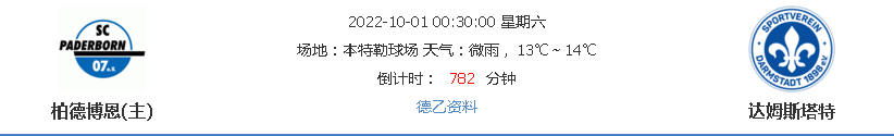 北京时间2022年10月1日00:30,2022-2023 德国乙组联赛,柏德博恩vs达姆斯塔特,此役是德乙联赛第10轮的较量,主队柏德博恩上轮联赛客场1-2不敌菲尔特,被对阵终结此前6轮不败,此役坐镇主场本特勒球场迎战达姆斯塔特,两队如何对峙?下面由本作者为大家做详细阐述。